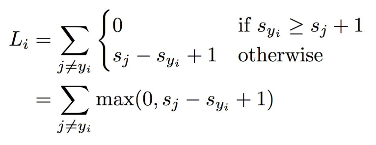 sj: 잘못된 label의 scoresyi: 제대로 된 label의 score -1: safety margin