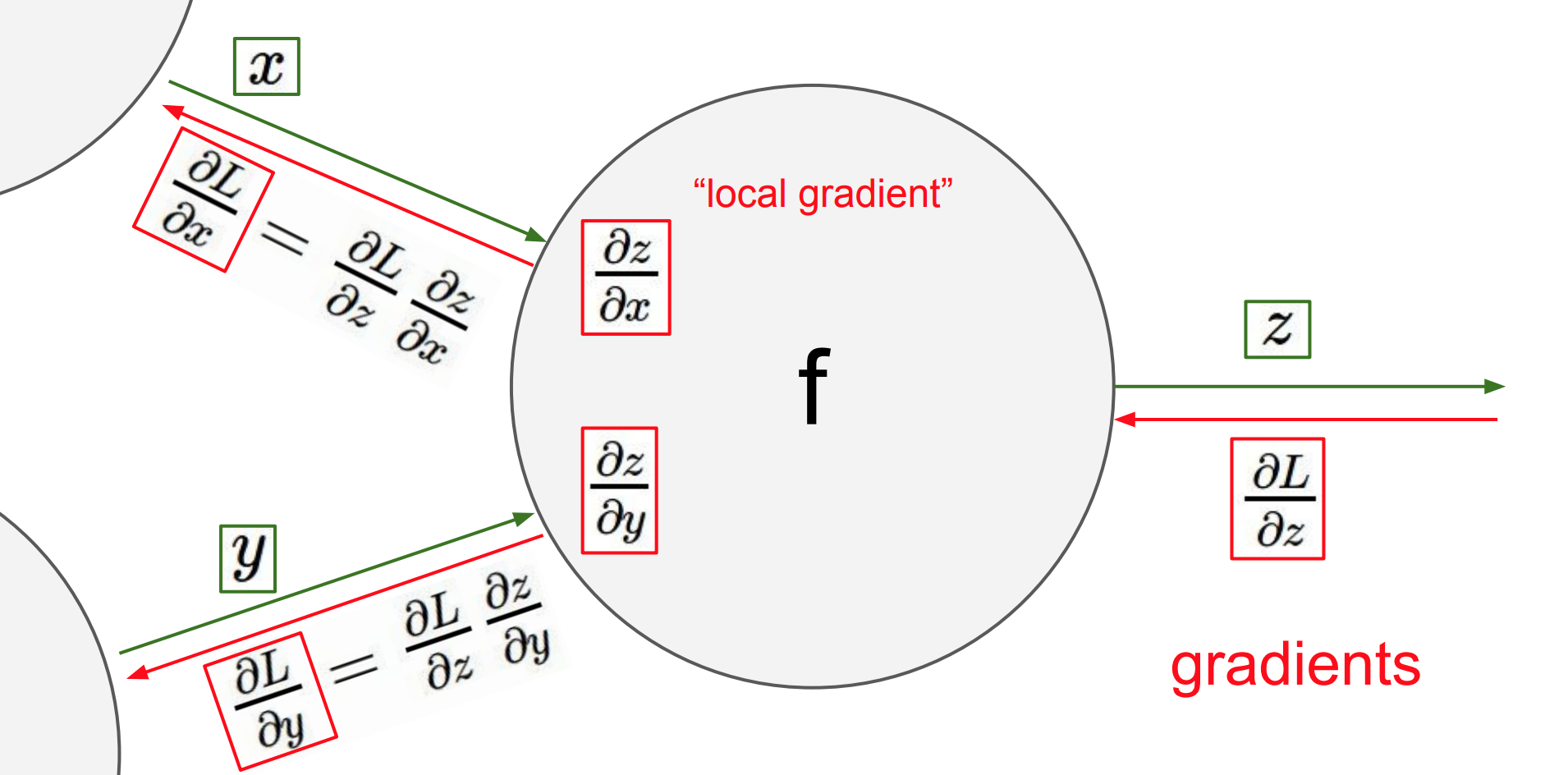 local gradient는 이때의 입력된 노드의 출력의gradient이다.- 각각의 입력마다 그때의