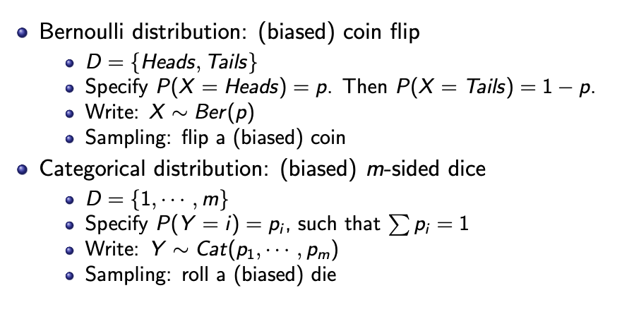 확률 분포의 표현은 여러가지이다. 베르누이 분포와 범주형(categorical)분포는 위 사진과 같이 표현할 수 있다.