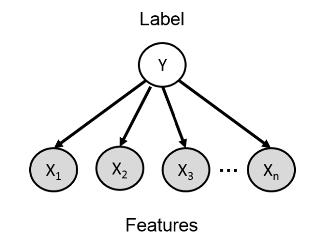 $$p(y, x_1, \ldots, x_n) = p(y) \prod_{i=1}^{n} p(x_i \mid y)$$