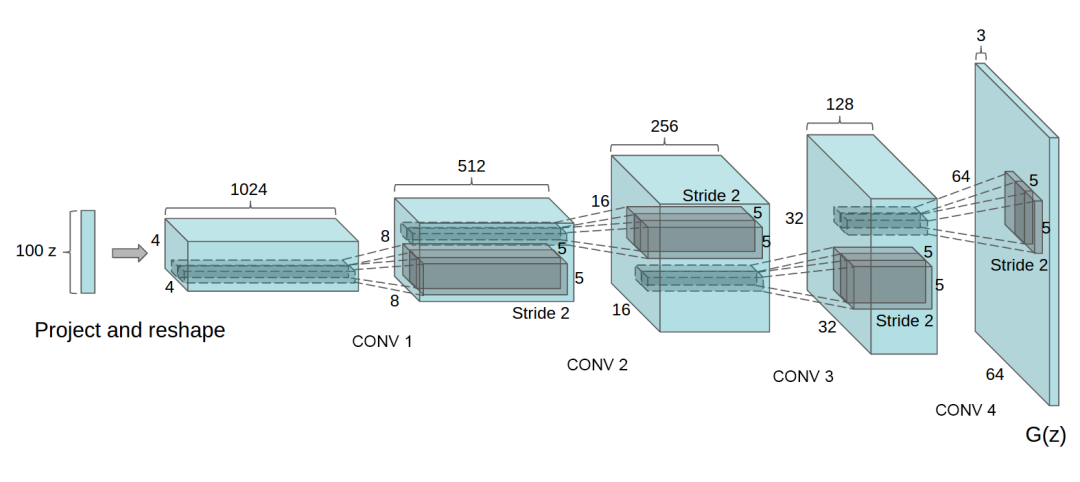 DCGAN에서사용된 구조를 정리를 해주고 있다.