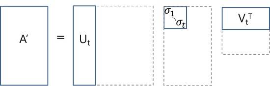- $W \approx U \Sigma_t V^T$ 처럼 W를 이 같은 식으로 분해가 가능하도록 한다.