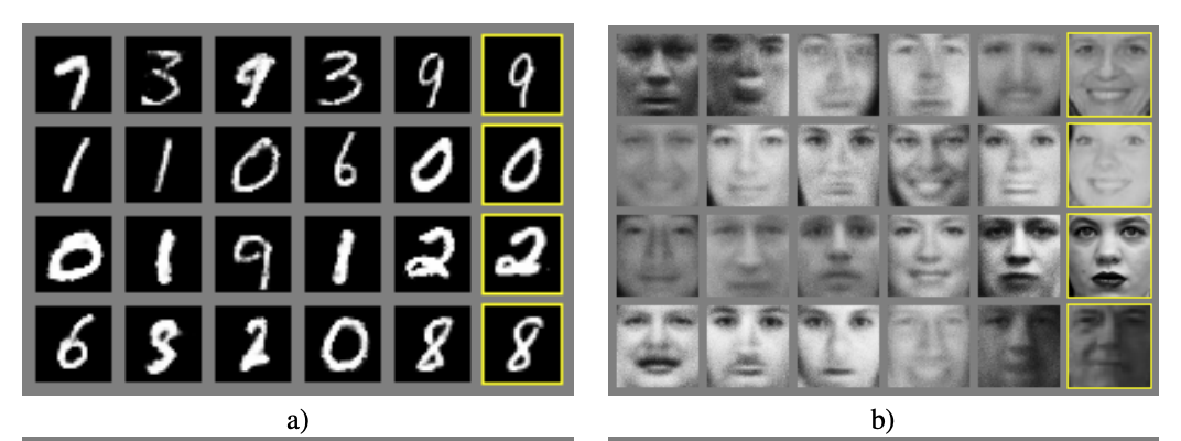 위의 훈련 결과를 보면 노란색 박스가 훈련 중 가장 가까운 sample을 뽑은 것이다. 이를 보면 왼쪽과 확연히 다른 것을 확인 할 수 있는데 이는 모델이 훈련 시memorized하지 않았다는 것을 의미한다.