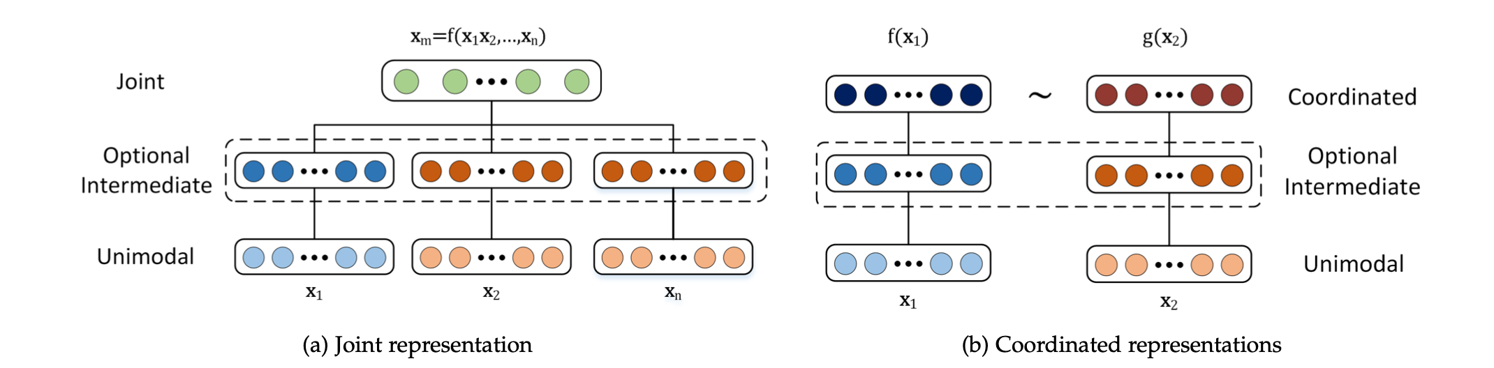 joint는 각각의modality를 같은representation space에 결합하는 방식이다. 이는 아래와 같은 수식으로 표현할 수 있다. ($x_1, x_n$등은 각각 modality이다.)