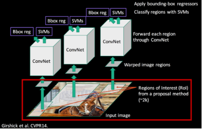 위 그림처럼Region-proposal을 통해2000개의 카테고리를 만들고 이를CNN을 사용해고정적인 길이의 특징 벡터를 추출 한다.