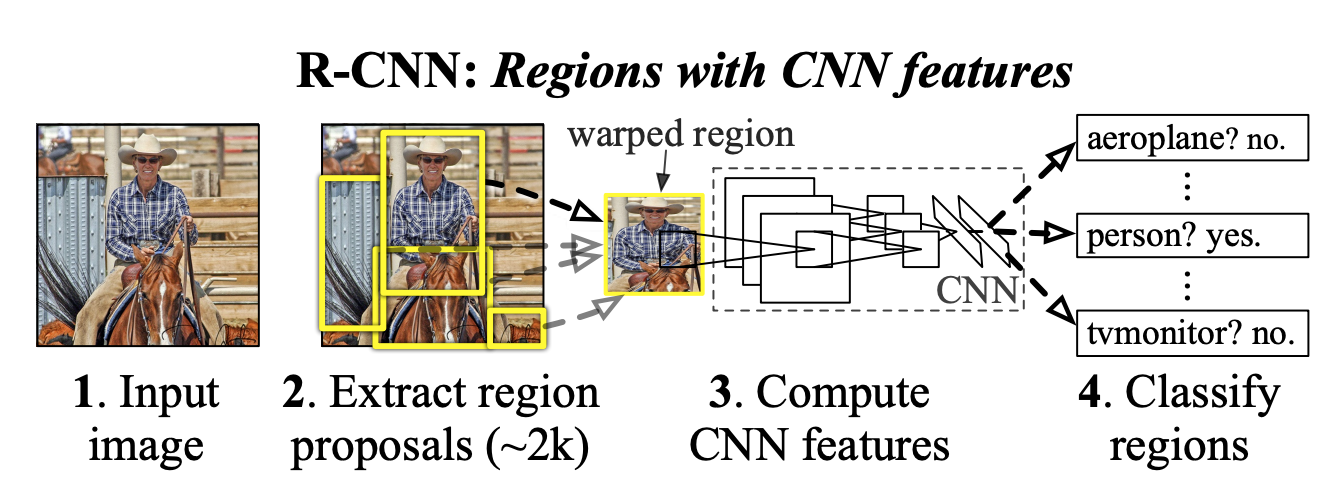 region proposal을CNN과 결합했기 때문에R-CNN(Regions with CNN features)라고 한다.