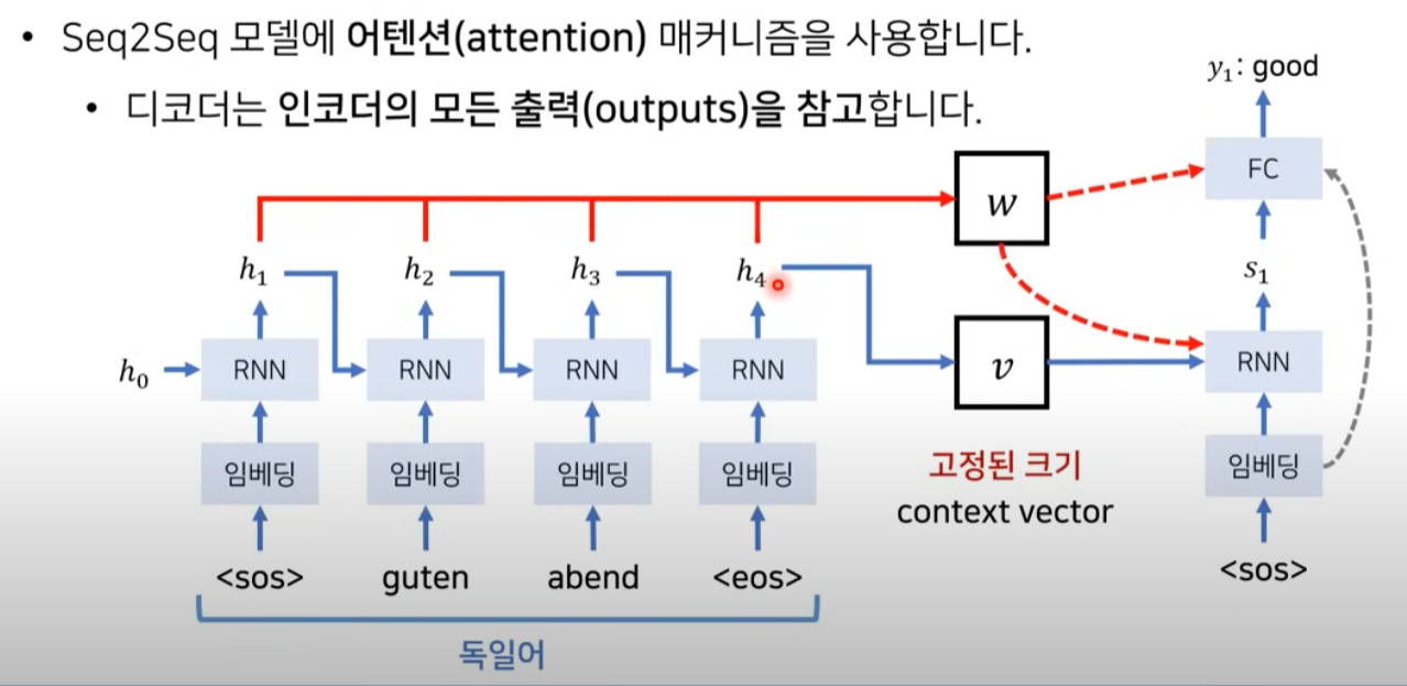 - 또한 input 단어가 많아지면 encoder의 마지막 부분의 출력인