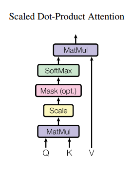 Attention을 계산하기 위한 방법이다.Input은query와key의dimension $d_k$, value의 dimension $d_v$로 구성이 되어있다.